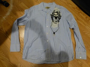Men's navy & green plaid western shirt.