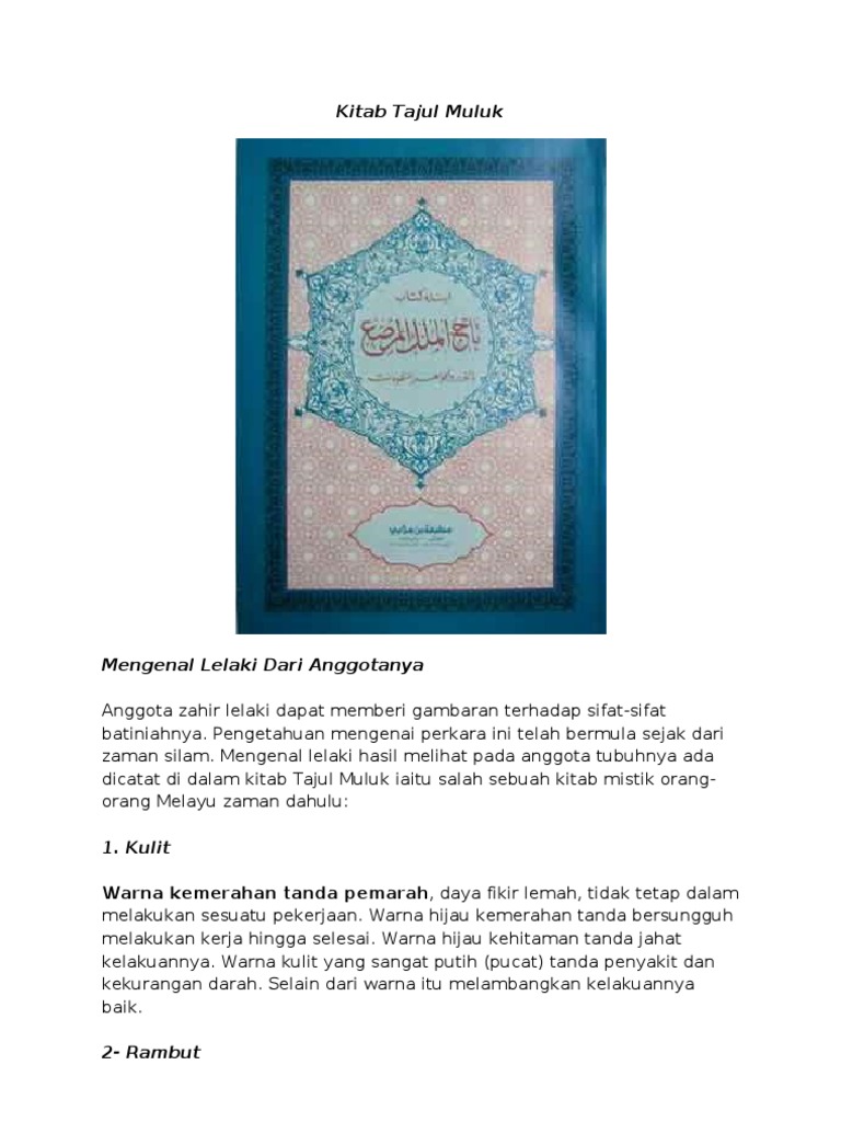 Ilmu tajul is the most commonly used name for the malay system of geomancy, comprising metaphysical and geomantic principles considered when siting or. 84% (90) 84% found this document useful (90 votes) 44k views 149 pages. Sebuah kitab melayu klasik yang dinamakan tajul muluk (تاج الملك). Manusia disebut insan adalah karena setelah bersaksi. Kitab tajuk muluk pdf ilmu tajul is the most commonly used name for the malay system of geomancy comprising metaphysical and geomantic principles considered when siting or.
